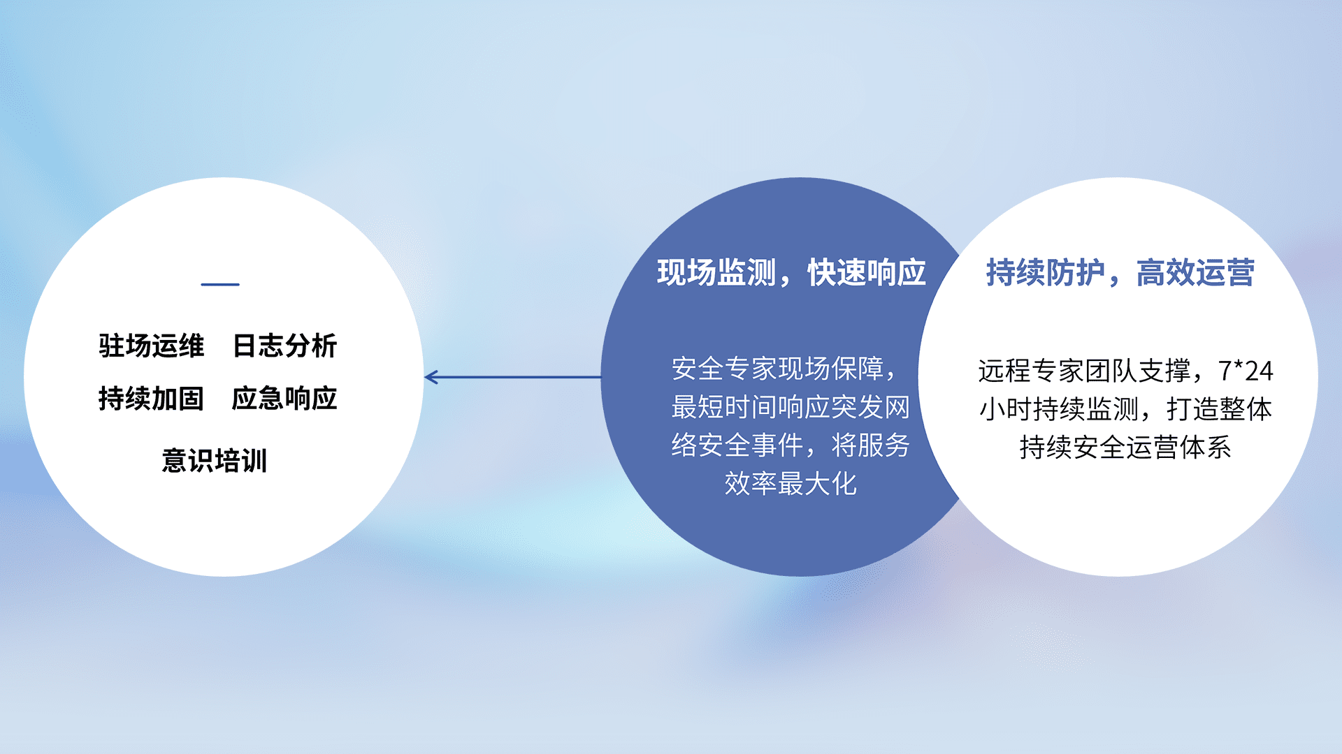 针对客户行业特性,,提供专属的一站式安全管理服务,,,帮助客户全面感知网络空间威胁,,,,通过安全专家的线上、、、、线下防护支持,,,,实现风险闭环,,将安全保障常态化,,为客户打造常态化安全运维运营服务。。